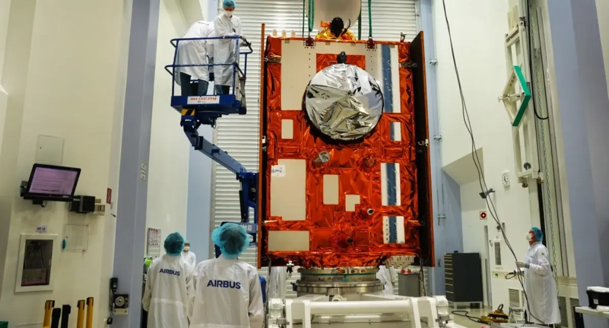Earth observation satellite Sentinel-6A is currently getting an earful. Airbus space engineers are ‘bombarding’ the latest satellite for the European environment and security programme ‘Copernicus’ with sound in a dedicated chamber at the Space Test Centre of Industrieanlagen-Betriebsgesellschaft mbH (IABG) in Ottobrunn, near Munich. The acoustic noise test simulates the sound impact to which the sat...
