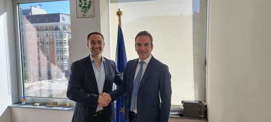 Da sinistra: Jason McGuinness (Cco Ryanair) e Roberto Occhiuto, presidente della Regione Calabria durante incontro avvenuto il 6 settembre 2023 a Bruxelles