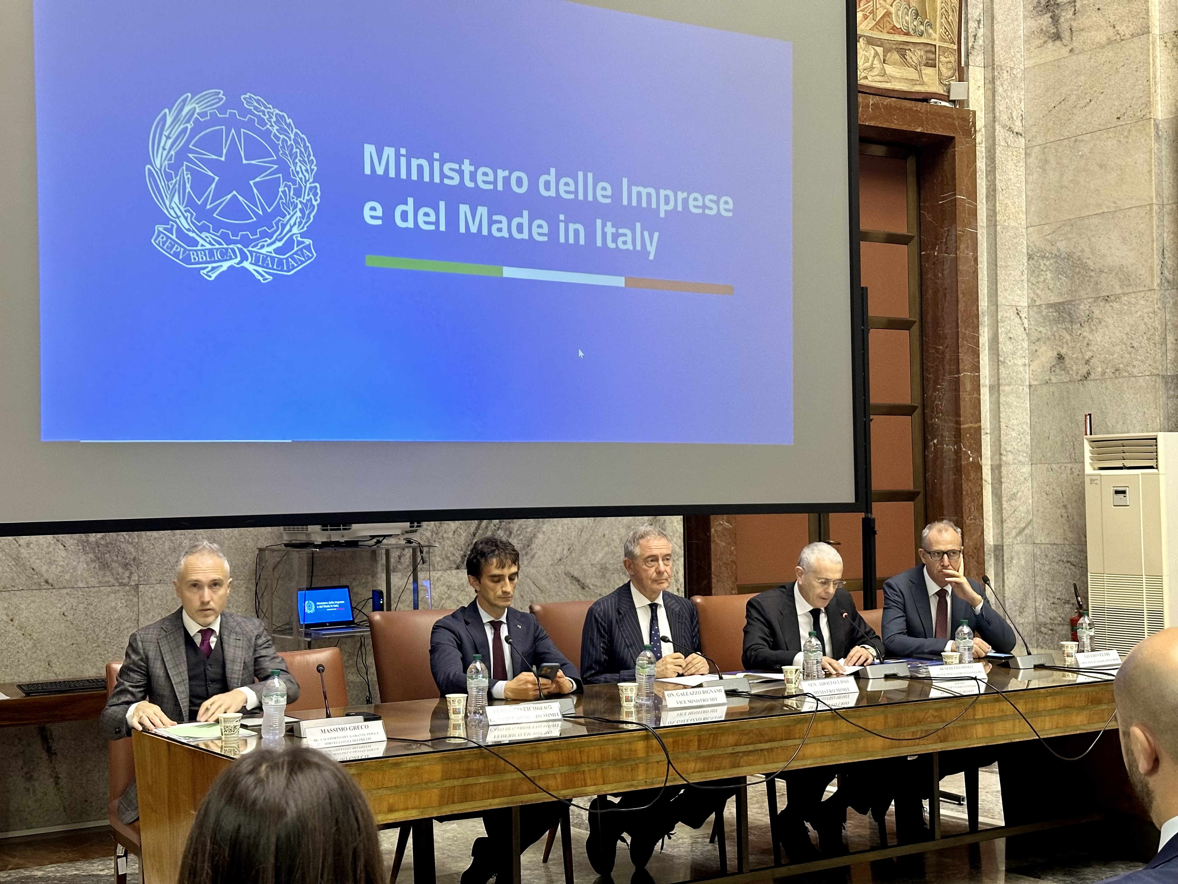 Roma, 20 novembre 2023. Salone degli Arazzi di Palazzo Piacentini, sede del Mimit, il tavolo permanente con gli attori del sistema aereo italiano, presieduto dal ministro Adolfo Urso e dal viceministro Infrastrutture e dei trasporti Galeazzo Bignami