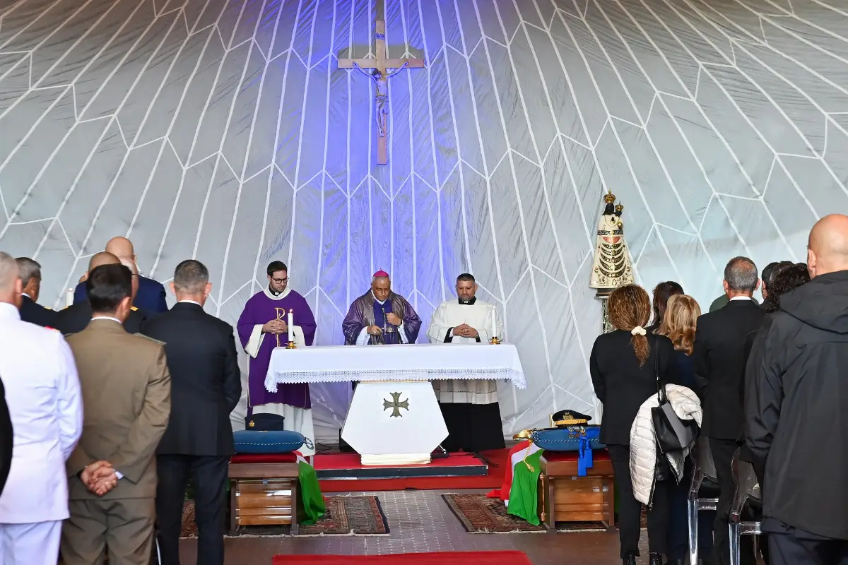 Il rito funebre è stata officiato dall’Ordinario militare per l’Italia, SE monsignor Gian Franco Saba, alla presenza del ministro della Difesa Guido Crosetto, del sottosegretario di Stato alla Difesa Matteo Perego di Cremnago, e di numerose autorità militari, civili e religiose –tra cui il capo di Stato Maggiore della Difesa generale Luciano Portolano e la Medaglia d’oro al Valor militare tenente colonnello Gianfranco Paglia– che si sono strette insieme al capo di Stato Maggiore dell’Aeronautica militare, generale di Squadra Aerea Antonio Conserva, ai familiari ed ai colleghi per l’ultimo saluto ai due militari scomparsi.