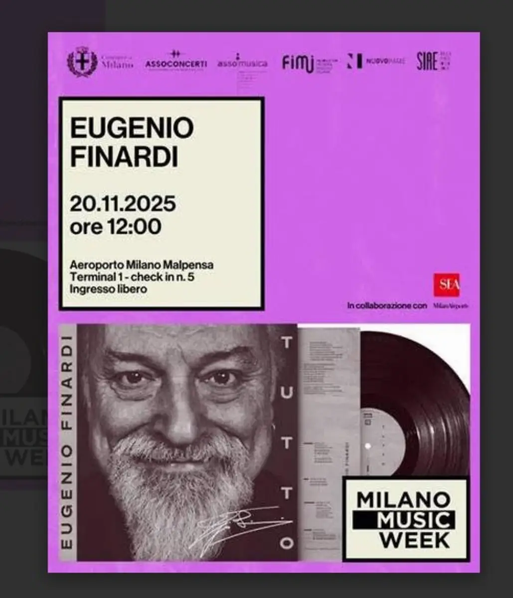 Domani, giovedì 20 novembre, alle ore 12.00 nell’area check-in dell’aeroporto di Milano-Malpensa, Eugenio Finardi terrà uno showcase –nell’ambito della Milano Music Week, la manifestazione che ogni anno accende la città con concerti, dj set, incontri, workshop, panel, showcase e appuntamenti speciali diffusi su tutto il territorio – portando dal vivo alcuni brani tratti dal suo ultimo album “Tutto”.