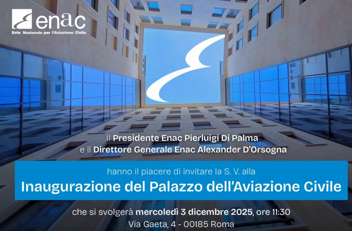 L'inaugurazione del Palazzo dell’aviazione civile si svolgerà stamattina mercoledì 3 dicembre, alle ore 11:30 presso la sede dell'Ente, con ingresso da Via Gaeta, 4 a Roma.