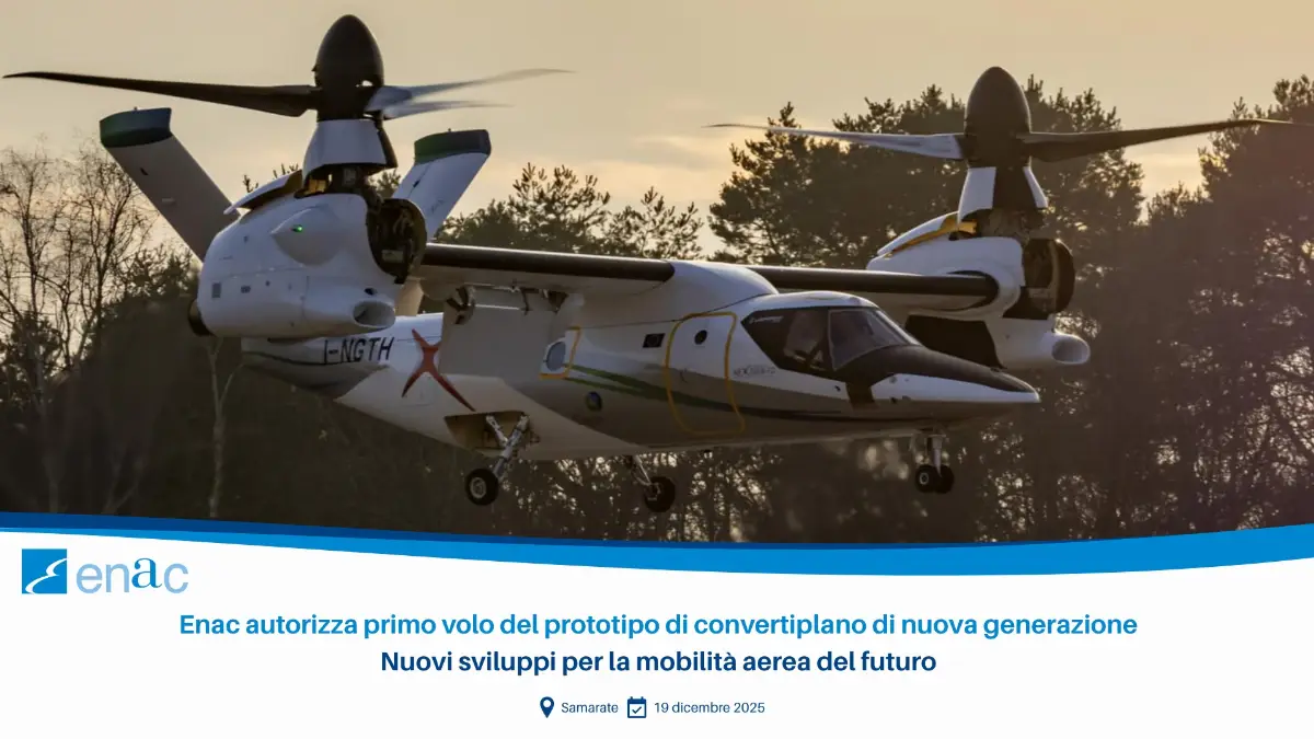 Primo volo, autorizzato da Enac (Ente nazionale aviazione civile), del Next Generation Civil Tiltrotor (NGCTR-TD) di Leonardo Helicopters: lo scorso 19 dicembre, presso l’area volo degli stabilimenti di Cascina Costa di Samarate (Varese), sono state avviate le operazioni del dimostratore tecnologico del convertiplano (aereo-elicottero) di nuova generazione, a seguito del rilascio del permesso di v...