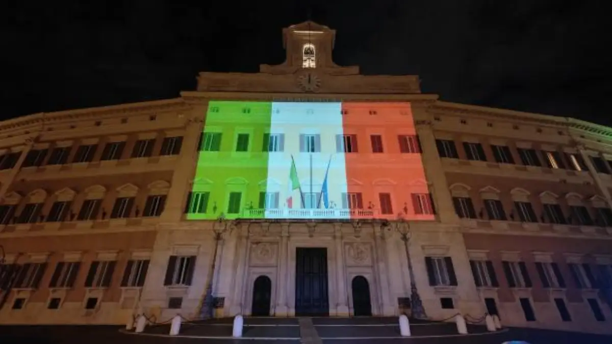 Pertanto, sulla facciata di Montecitorio viene proiettata la Bandiera nazionale dalla mezzanotte di martedì 17 alle 23:59 del giorno stesso, con spegnimento durante le ore diurne.