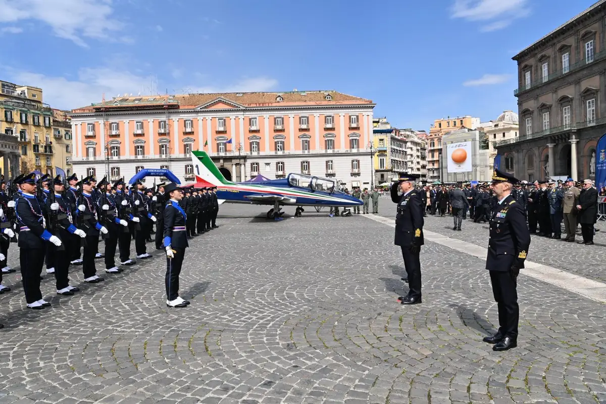 Sabato scorso 28 marzo 2026, giorno della ricorrenza della costituzione dell’Aeronautica militare (vedi AVIONEWS), alla presenza del capo di Stato Maggiore dell’Aeronautica militare, generale di Squadra Aerea Antonio Conserva, è stato inaugurato in Piazza del Plebiscito, a Napoli, uno spazio espositivo e divulgativo –aperto al pubblico fino al primo aprile– dove i cittadini potranno conoscere più da vicino la storia, le attività e le capacità della Forza Armata e dove potranno trovare in mostra diversi assetti, tra cui una replica dell'aereo MB-339PAN delle "Frecce Tricolori", postazioni con simulatori ludici e visori oculus, punti informativi dedicati ed un corner predisposto in collaborazione con l’Associazione Arma Aeronautica della Campania a favore del progetto solidale benefico “Un dono dal cielo”, promosso in tutta Italia per il 2026 dall’Aeronautica militare. Sabato 28 marzo e domenica 29 marzo, presso l’area espositiva di Piazza del Plebiscito, si è esibita anche la Banda musicale dell’Aeronautica militare.