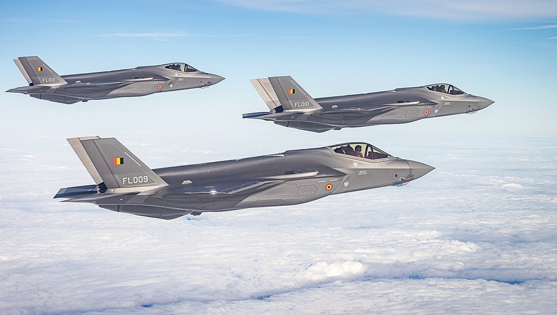 I nuovi aerei caccia stelath F-35 per la Difesa belga giunti alla base aerea di Florennes, Belgio, il 13 ottobre 2025