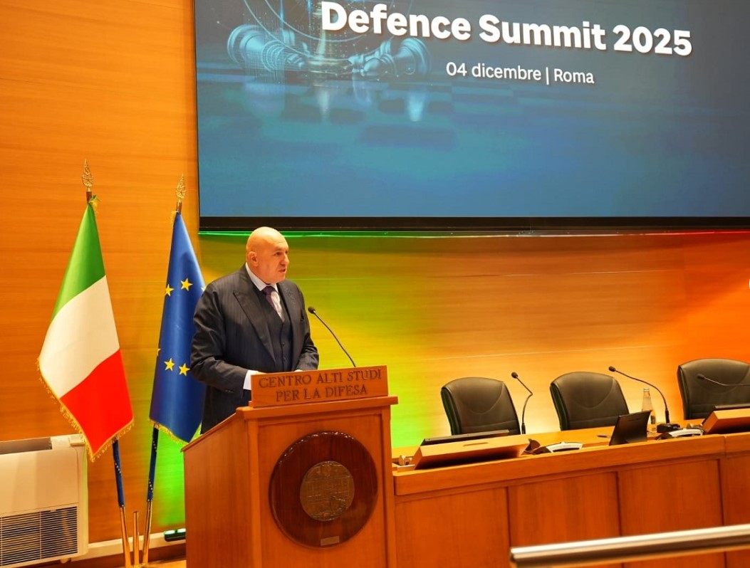 Roma, 4 dicembre 2025. Il ministro della Difesa, Guido Crosetto, durante il suo intervento in chiusura dei lavori al "Defence Summit 2025 - "Un’Italia più sicura e difesa” presso il Centro alti studi per la Difesa (Casd)