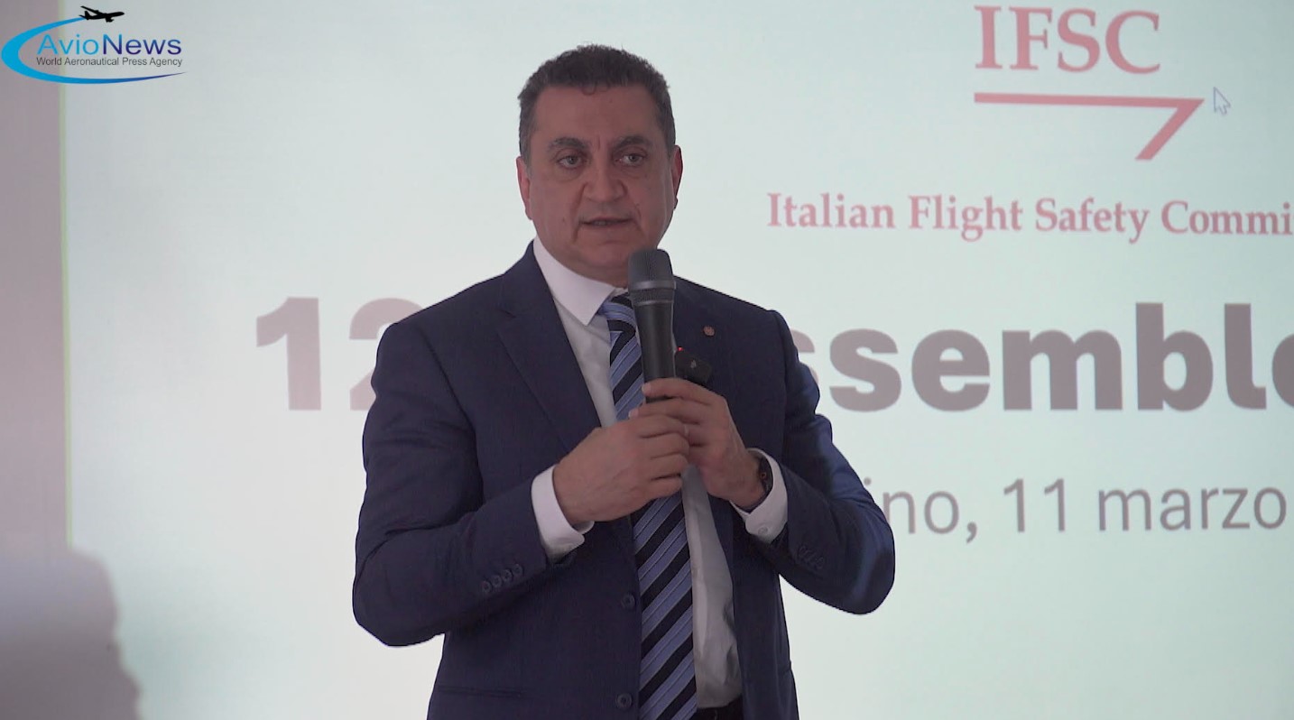 Lorenzo Mezzadri, presidente Ifsc (Italian Flight Safety Committee), durante il suo intervento alla 125esima assemblea ospitata da Aeroitalia a Fiumicino