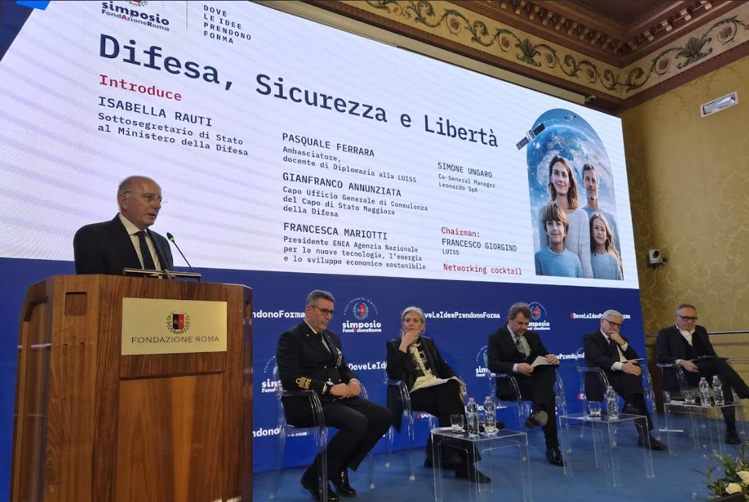 Roma 18 marzo 2026. XIesimo Simposio di Fondazione Roma dal titolo “Difesa, Sicurezza e Libertà” tenutosi a Palazzo Sciarra Colonna: il presidente della Fondazione Roma Franco Parasassi durante il suo intervento