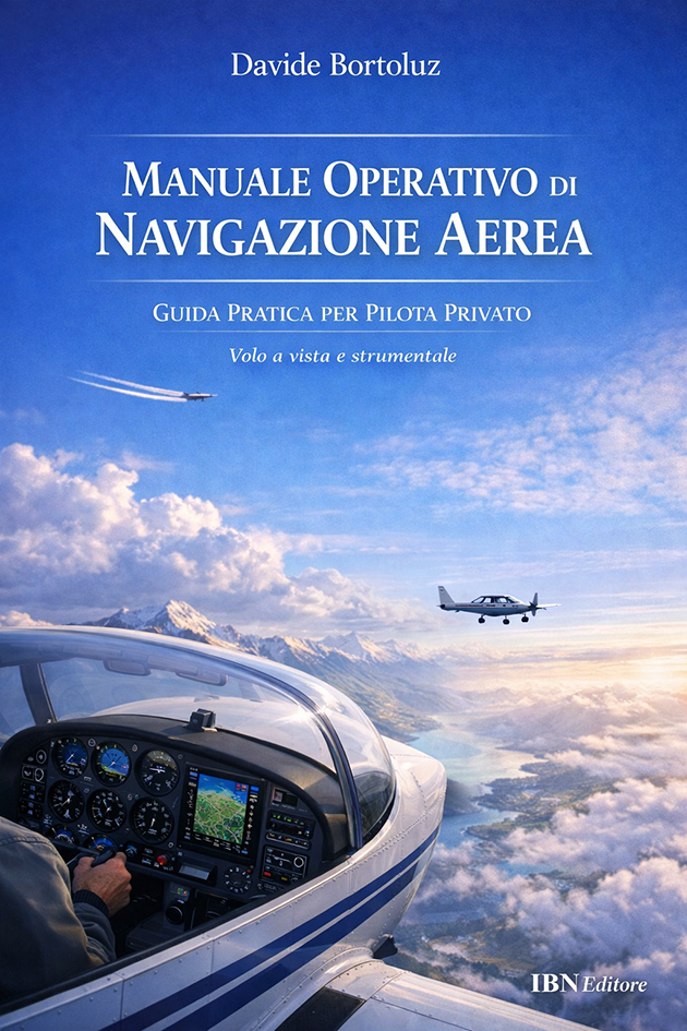 Copertina del libro dal titolo "Manuale operativo di navigazione aerea: guida pratica per pilota privato, volo a vista e strumentale" scritto da Davide Bortoluz