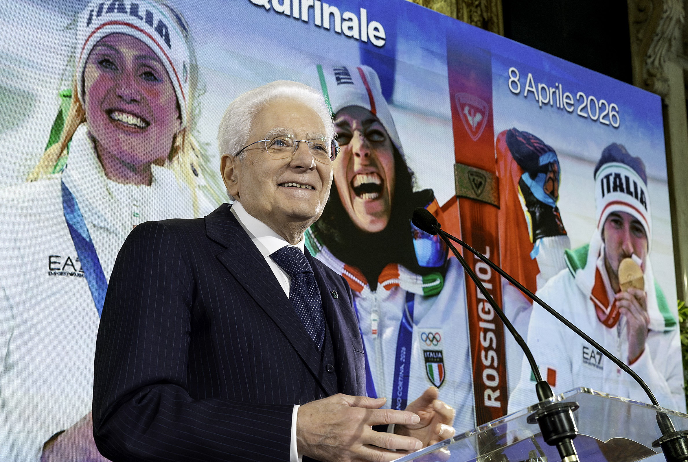 Palazzo del Quirinale, 08/04/2026 (II mandato). Intervento del presidente Sergio Mattarella alla cerimonia di restituzione della Bandiera da parte degli atleti di ritorno dai Giochi olimpici e paralimpici di "Milano-Cortina 2026"