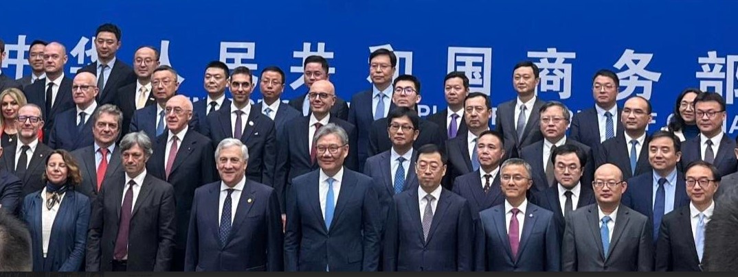 Pechino, 16 aprile 2026. Enrico Marchi (dietro alla destra del ministro Affari esteri Antonio Tajani, in prima fila), presidente Gruppo Save, nella foto di gruppo della tavola rotonda imprenditoriale di alto livello Italia-Cina